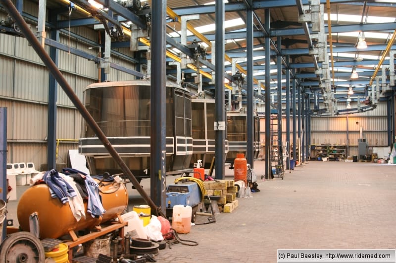 I was fortunate enough to get a behind the scenes tour of Alton Towers in July 2007, this is the final photo set from that trip the Skyride maintenance area. The tour was part of an organised trip arranged by Club Pleasure Beach.